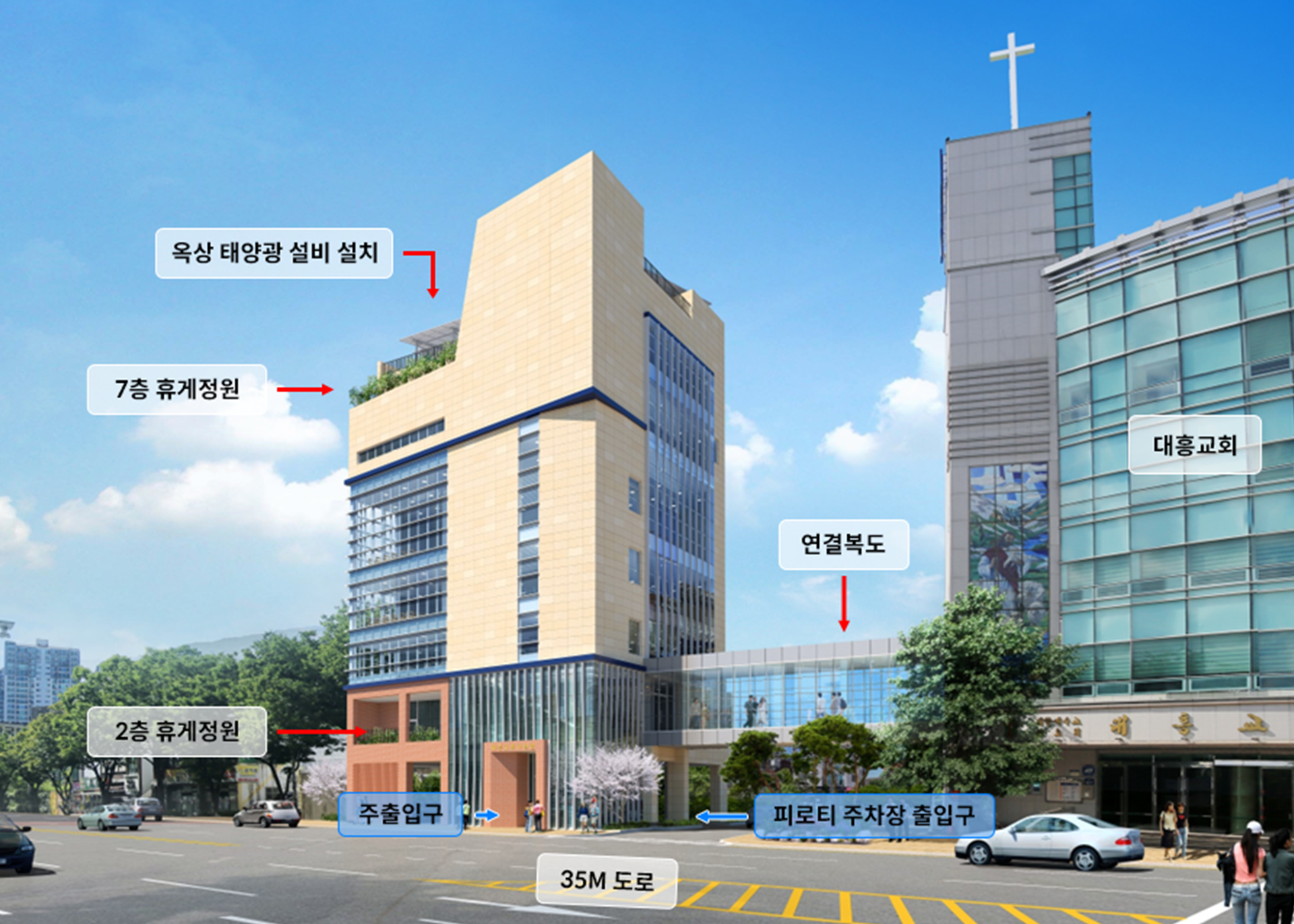 기존 교육부서의 성장과 친교 및 선교활동을 위한 공간이 부족하여 다목적 강당, 유아 교육시설, 소그룹실, 카페 등 교회발전과 미래를 대비하고자 하여 필요함.